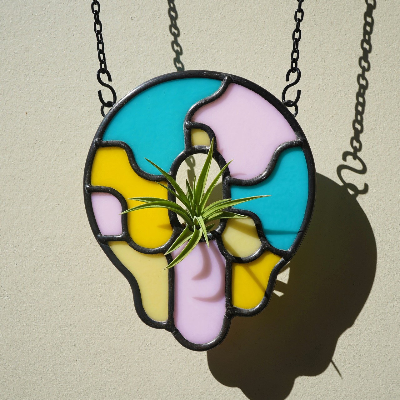 ステンドグラスのエアプランツホルダー、サンキャッチャー。