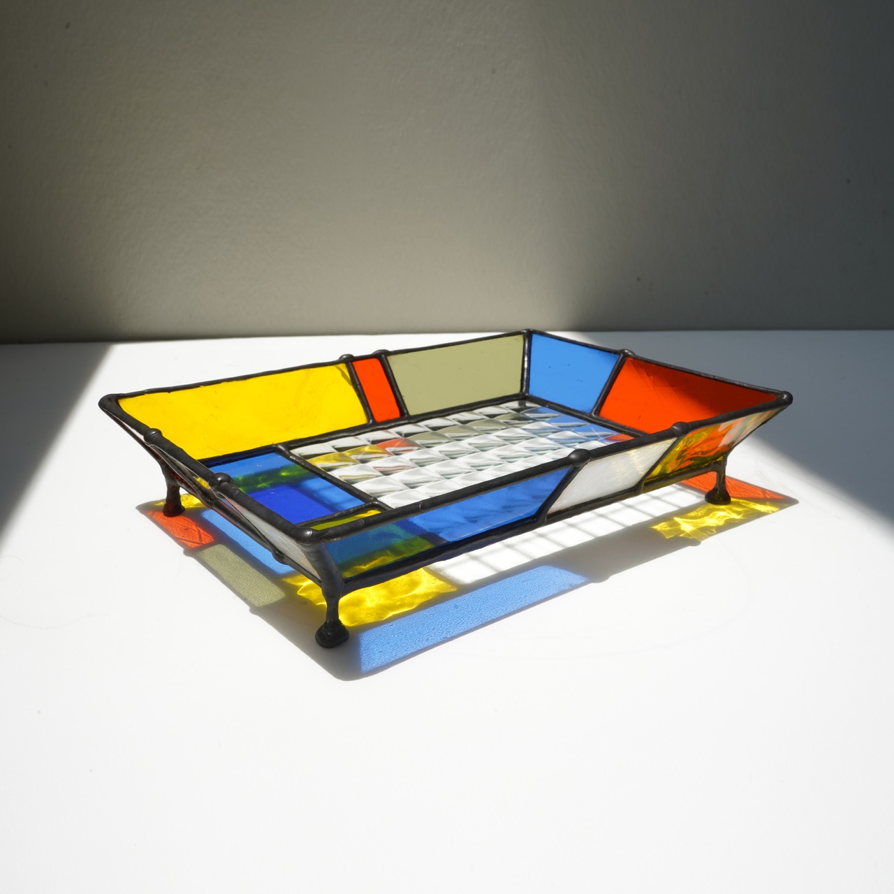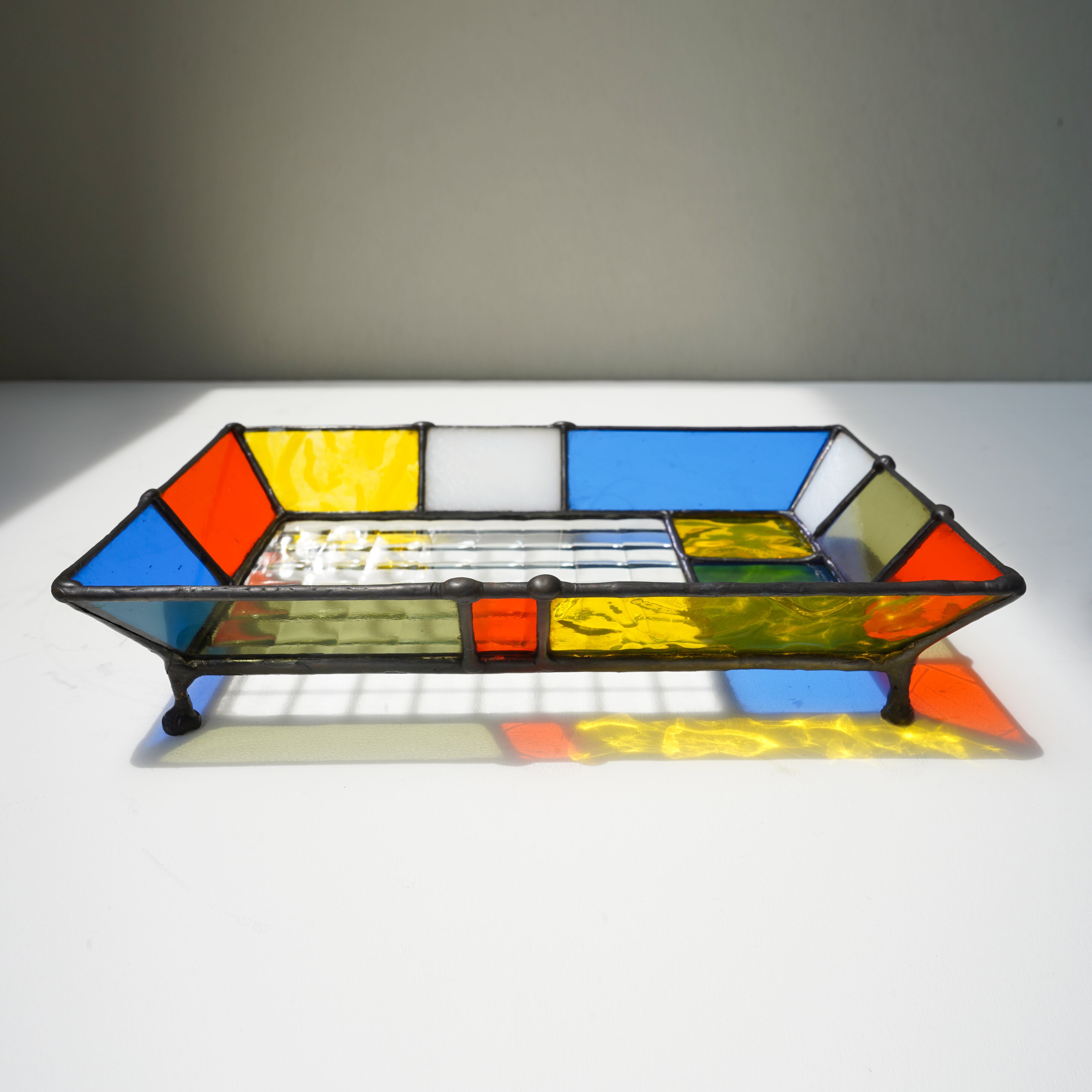 ステンドグラスの脚付きトレー